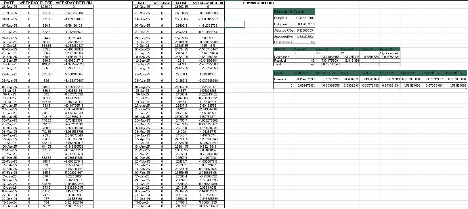 The R² value of 0.1543 indicates that approximately 15.43% of the variation in AIS returns is explained by changes in the Nifty 50, while the remaining 84.57% is influenced by company-specific factors such as raw material prices, automobile demand, construction activity, operational efficiency, and management decisions.